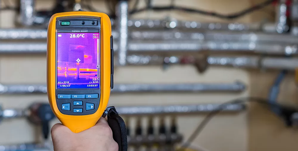 - الكاميرات الحرارية: تستخدم هذه الكاميرات لقياس درجات الحرارة وتحديد الأماكن التي يحدث فيها تسرب المياه، حيث تظهر المناطق الأكثر برودة نتيجة وجود الماء.